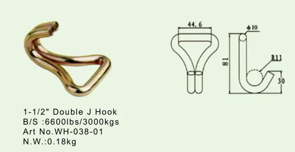 Оцинкованная 38 мм 1,5 тонны груза увязку конец установку двойной J крюк